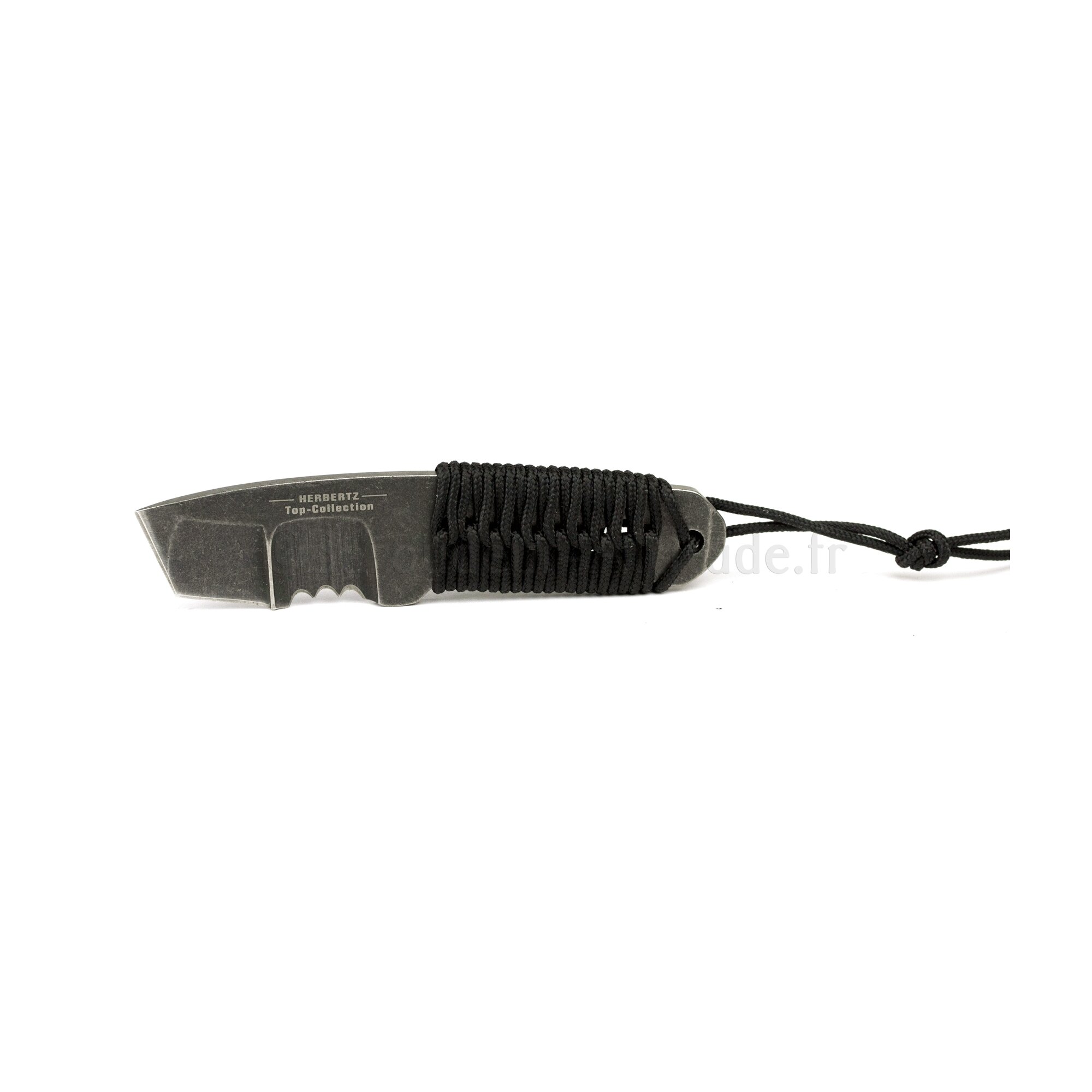 Couteau de cou Herbertz Top Collection avec une lame de type tanto semi-dentée en acier 440 sablé et manche corde.