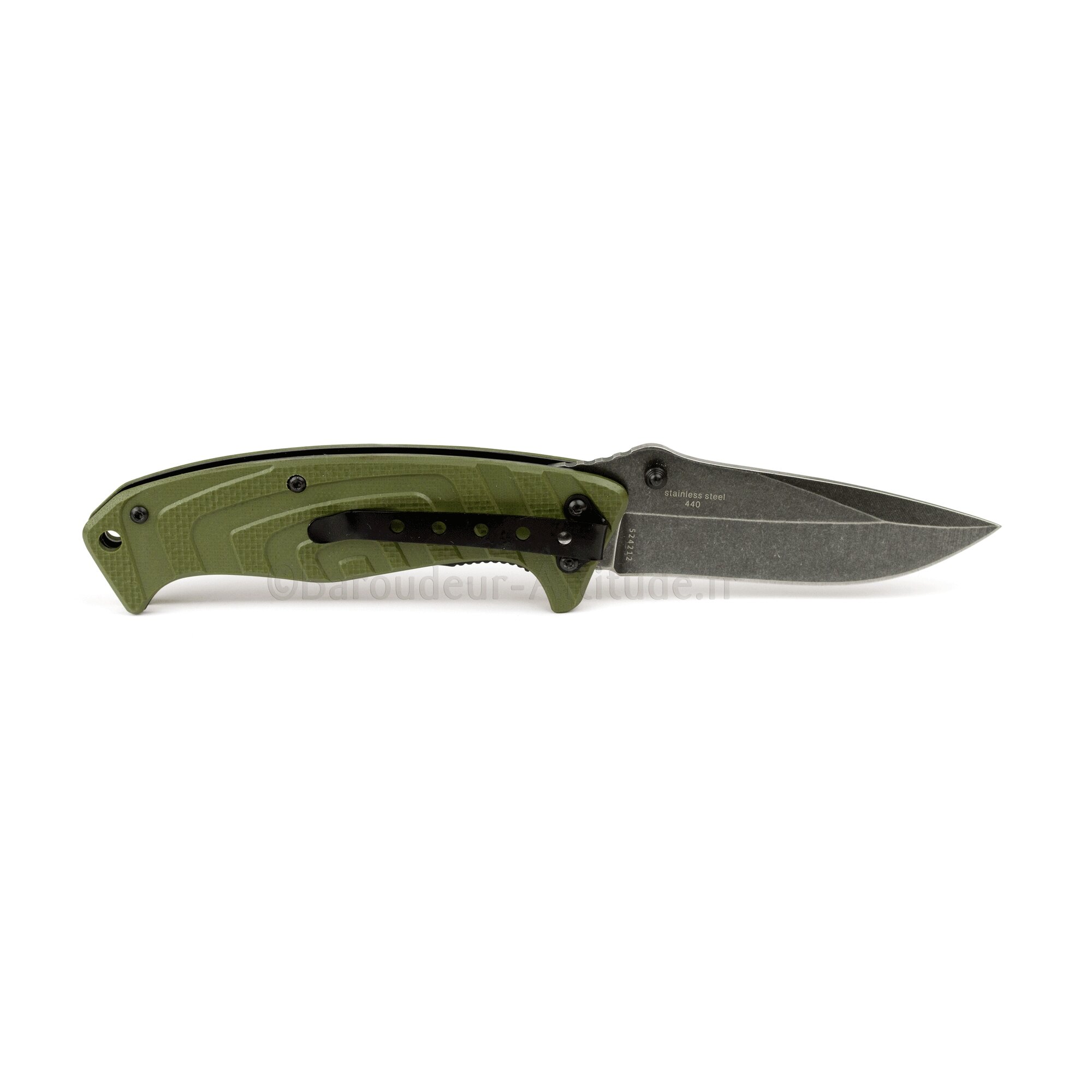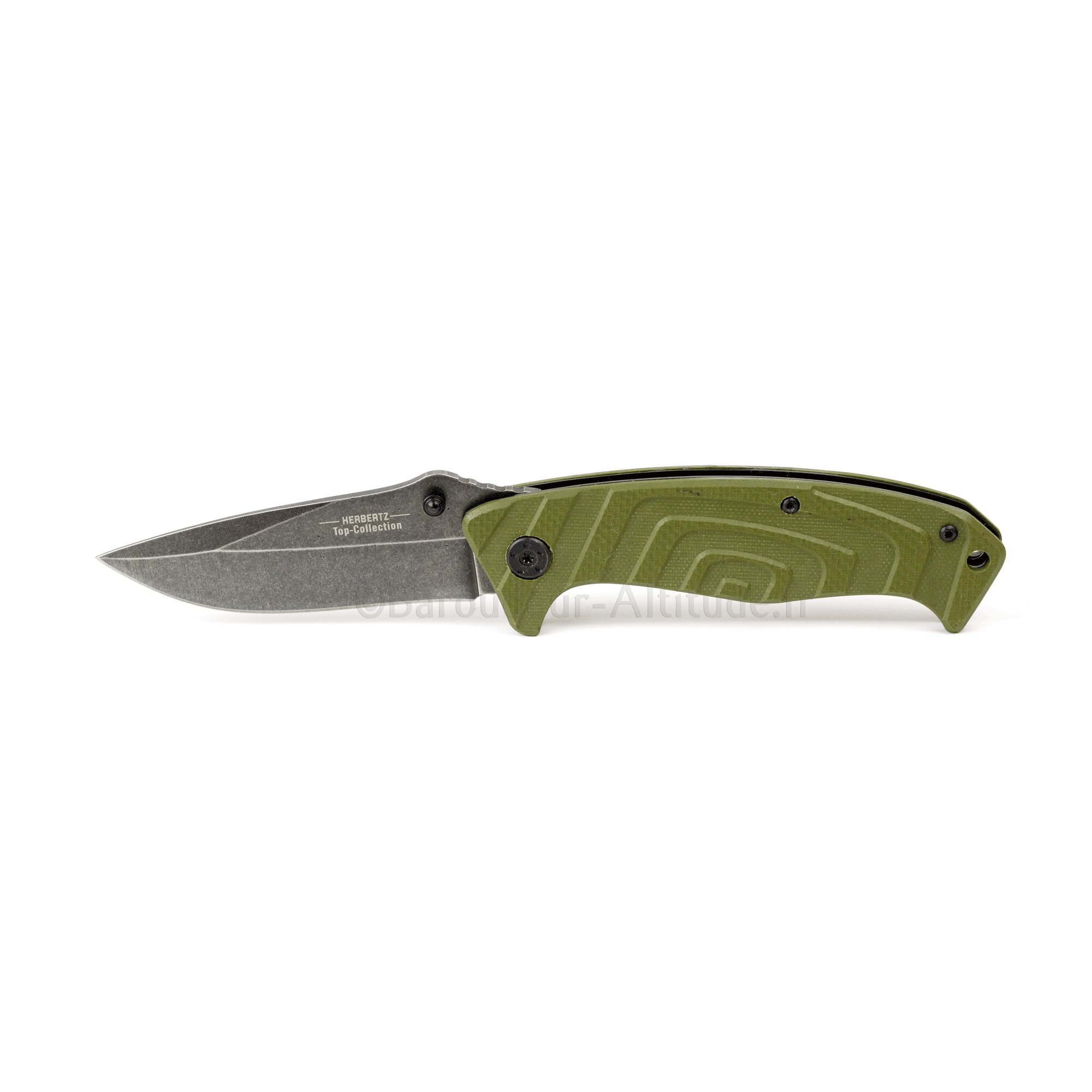 Un excellent petit couteau de poche avec une lame lisse en acier 440 en finition "stonewashed". Système de blocage de lame de type liner lock et manche en G10 Vert.