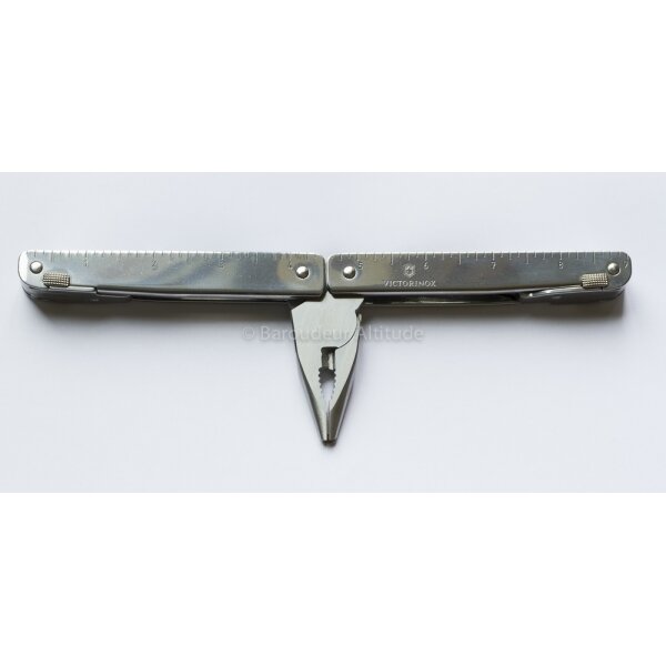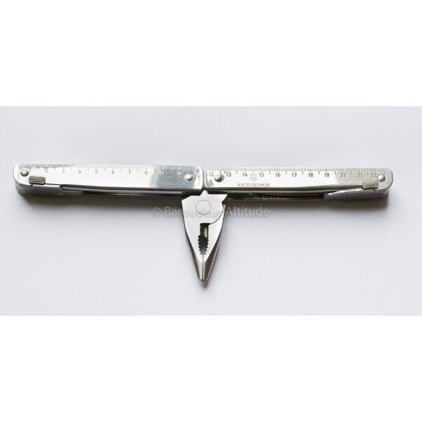Le SwissTool Victorinox est un outil multifonction extrêmement fiable, pratique, fonctionnel et agréable d’utilisation. Fabriqué en acier inox, le SwissTool est composé de 12 pièces et il est doté d’un mécanisme breveté qui permet de bloquer les pièces une fois qu’elles sont ouvertes, pour plus de sécurité.