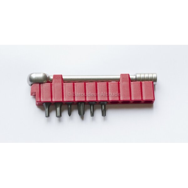 Le SwissTool CS Plus comprend en plus un kit d’adaptateur complet avec embout Hex 3, embout Hex 4, embout Phillips 0, embout Phillips 3, embout Torx 10, embout Torx 15, clé à cliquet (30Nm) avec prolongateur d’outil, mèche tire-bouchon amovible et mini tournevis.