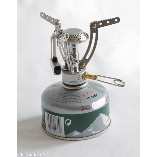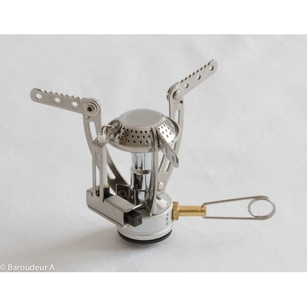 Le réchaud Spider est compact et léger. Il est équipé d'un allumeur piezo et d'une vanne de réglage de flamme.
