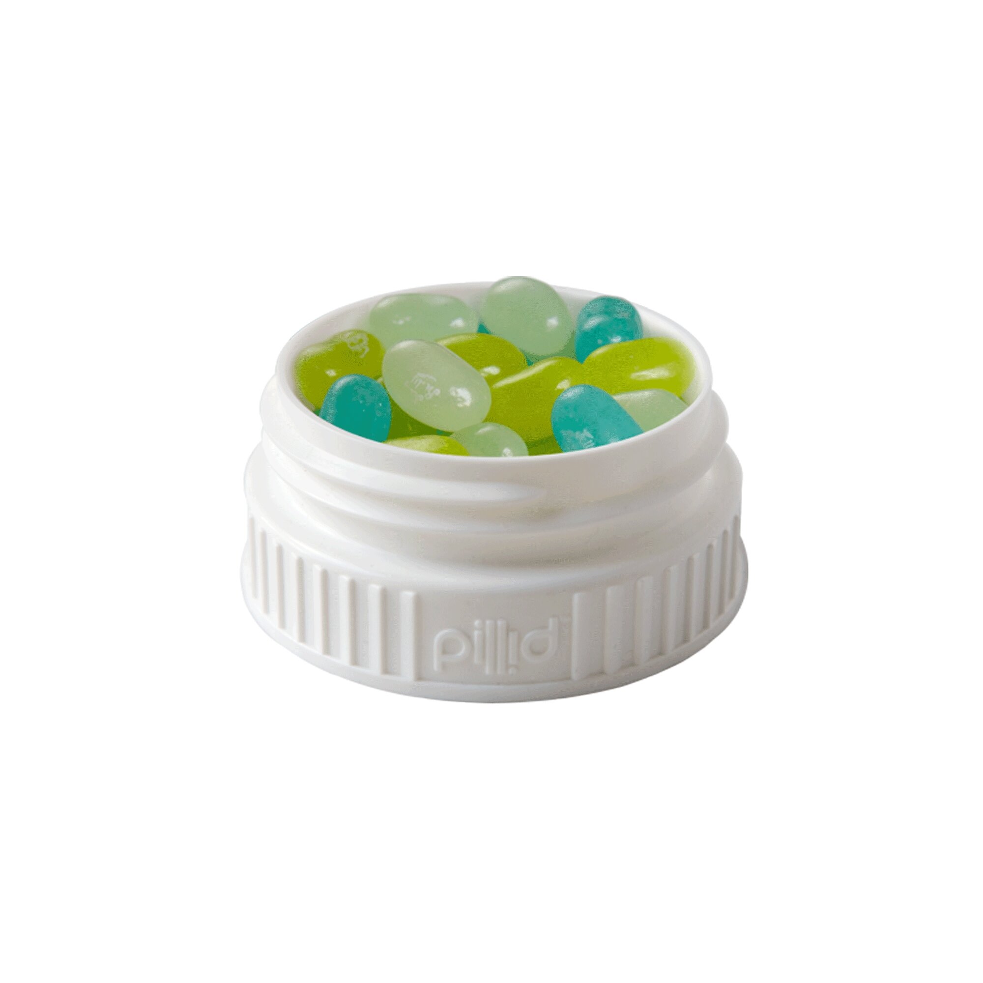 Le bouchon PILLID s'intercale entre la gourde et le bouchon de celle-ci et peut également s'empiler avec plusieurs bouchons PILLID.