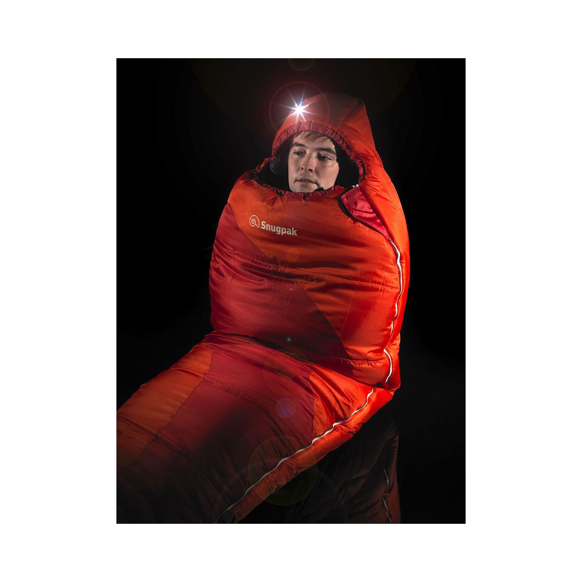 Les sacs de couchages Chrysalis de Snugpak sont livrés avec une petite lampe à LED pouvant se loger sur la casquette du sac en permettant ainsi d’avoir une source de lumière à disposition à tout moment de la nuit.