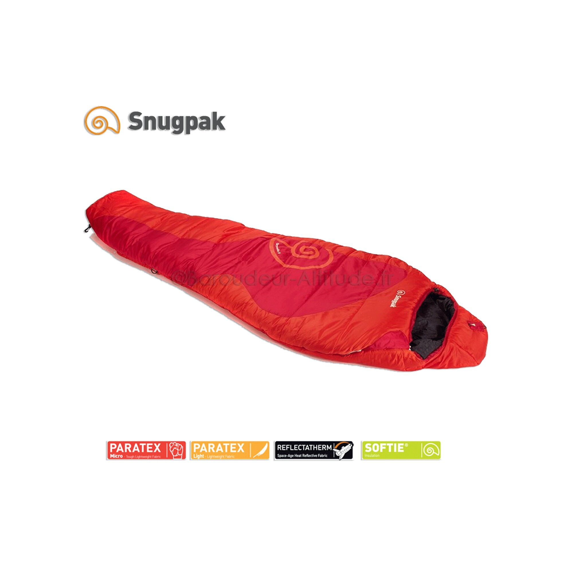 Il est garni d’une fibre synthétique siliconée très fine appelée Softie développée par Snugpak. Cette fibre est disposée en étoiles se croisant dans tous les sens pour éviter que la fibre se sépare dans les pliures et augmenter son pouvoir isolant.