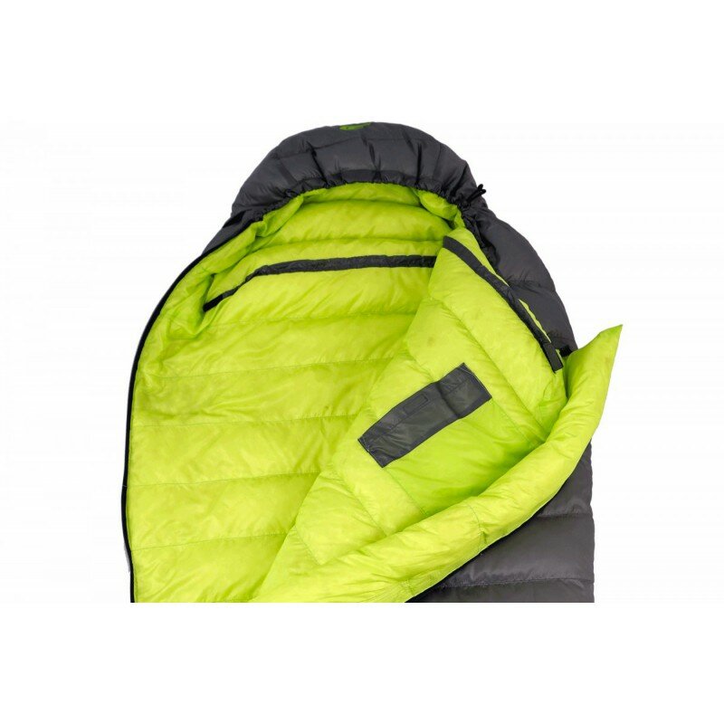 Le sac de couchage D400M offre un col préformé garni également de duvet d'oie. Il est doté d’une fermeture éclair à double sens avec une bande de protection pour éviter tout coincement. On retrouve au niveau de la fermeture éclair un rabat de protection intérieure isolant rembourré.